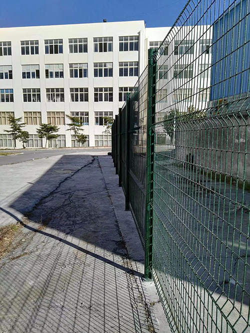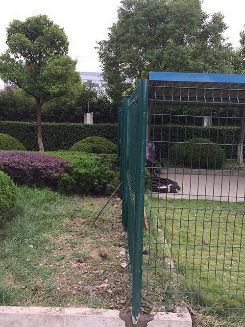 下圖是蘇州工業(yè)園區(qū)一家化工企業(yè)為區(qū)域分隔采購(gòu)的蘇州桃形柱護(hù)欄網(wǎng)安裝時(shí)拍攝的照片?蛻(hù)選擇的是桃形柱護(hù)欄網(wǎng),立柱用的100*70mm桃形柱,鋼絲直徑為浸塑后5.0mm,網(wǎng)孔間距為50*200mm,這批南京護(hù)欄網(wǎng)的立柱和網(wǎng)片均是墨綠色。